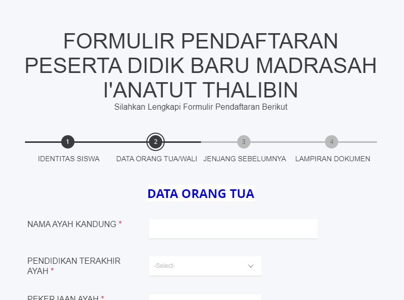 4. Mengisi Formulir Data Orang Tua