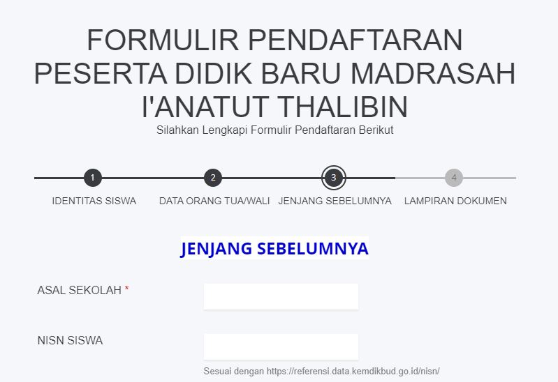 5. Mengisi Formulir Jenjang Sebelumnya